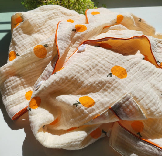Cute Korean Jeju Tangerine Long Cotton Pajama Set