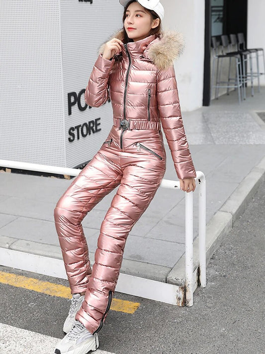 K-pop Women's Fur Collar One Piece Parka Jumpsuits