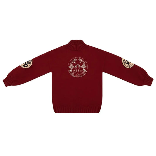 Japanese Koi Fish Embroidery Knit Sweater Tassel Skirt Two Piece