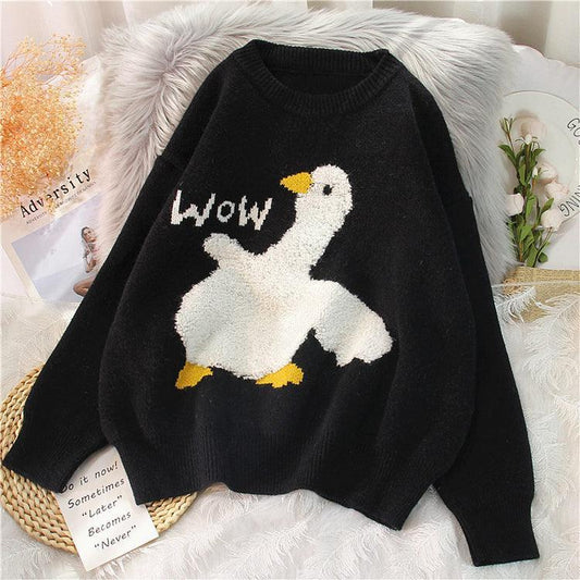 Korea Style Wow Duck Cartoon Oversized Sweater